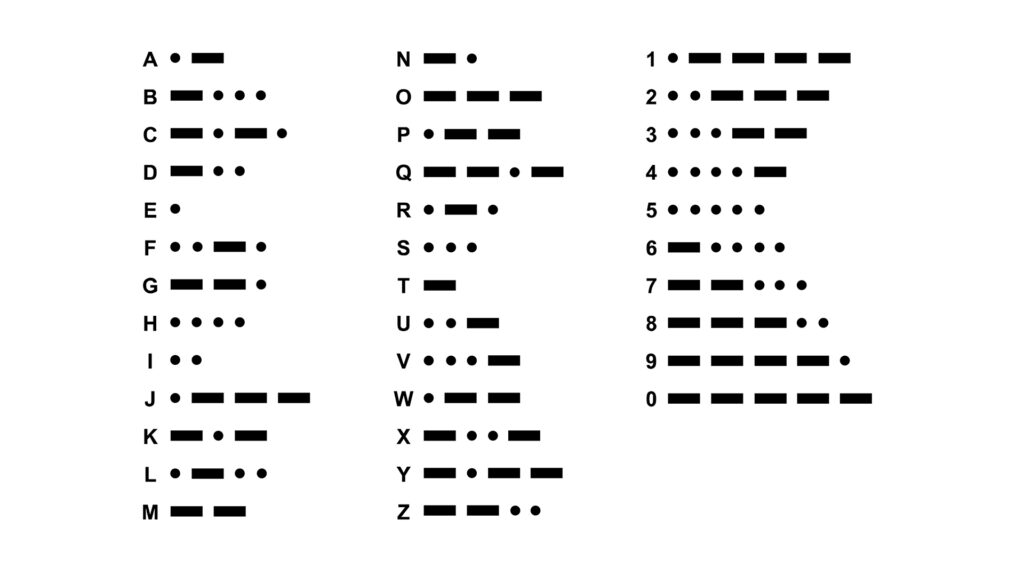 Invention de Samuel Morse en 1835, il a été développé pour la télégraphie électrique et est considéré comme le précurseur des communications numériques. Chaque caractère est codé par une combinaison unique de points et de traits, avec les lettres les plus fréquentes (comme E, codé par un seul point) ayant des séquences plus courtes pour optimiser la vitesse de transmission.